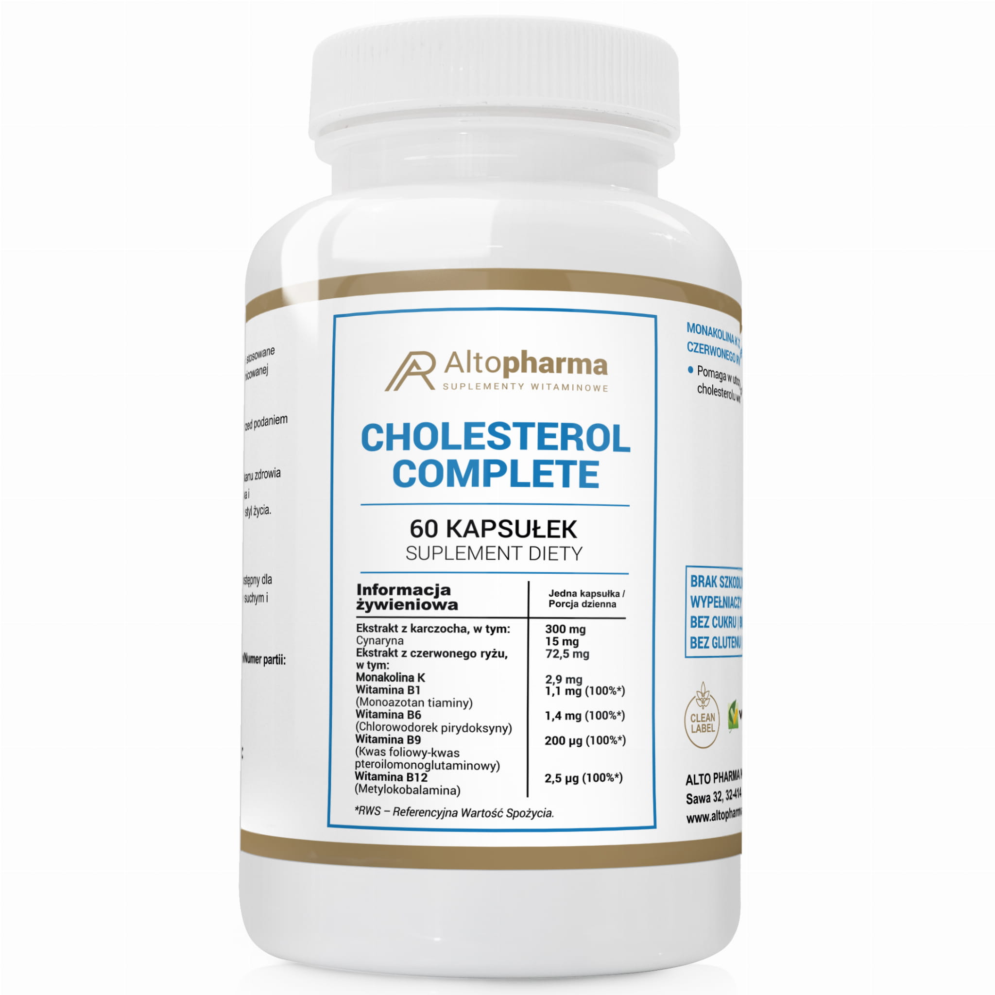 Alto pharma CHOLESTEROL COMPLETE MONAKOLINA K B1 B6 B9 B12 PRODUKT WEGE 60 kapsułek